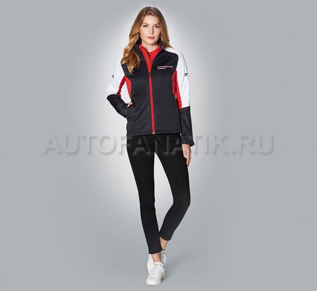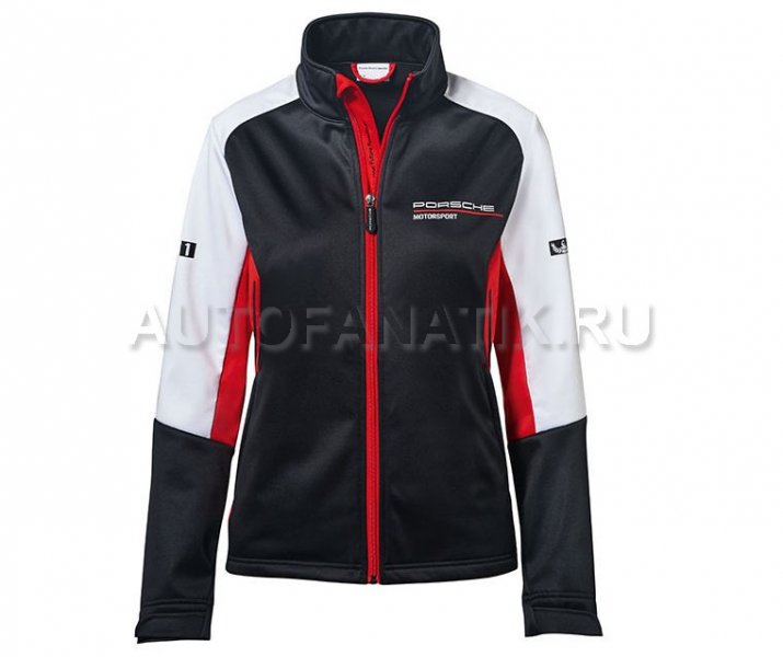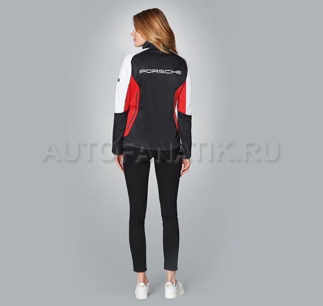 Легкая женская спортивная куртка со светоотражающими элементами - именно такие носят члены команды "Porsche Motorsport". Женственный, слегка приталенный крой. Дышащий и быстросохнущий материал. Внутри имеется специальный ремешок-держатель для берушей или очков. Материал: 100% полиэстер. Цветовая комбинация: черный/белый/красный.