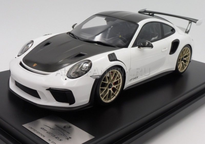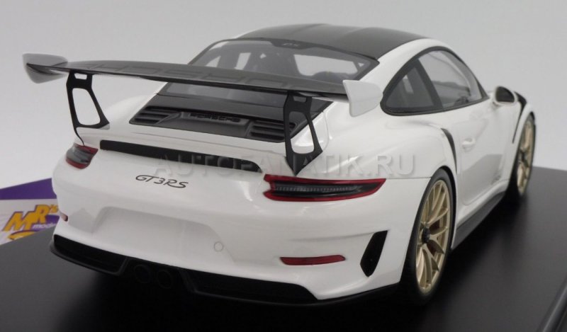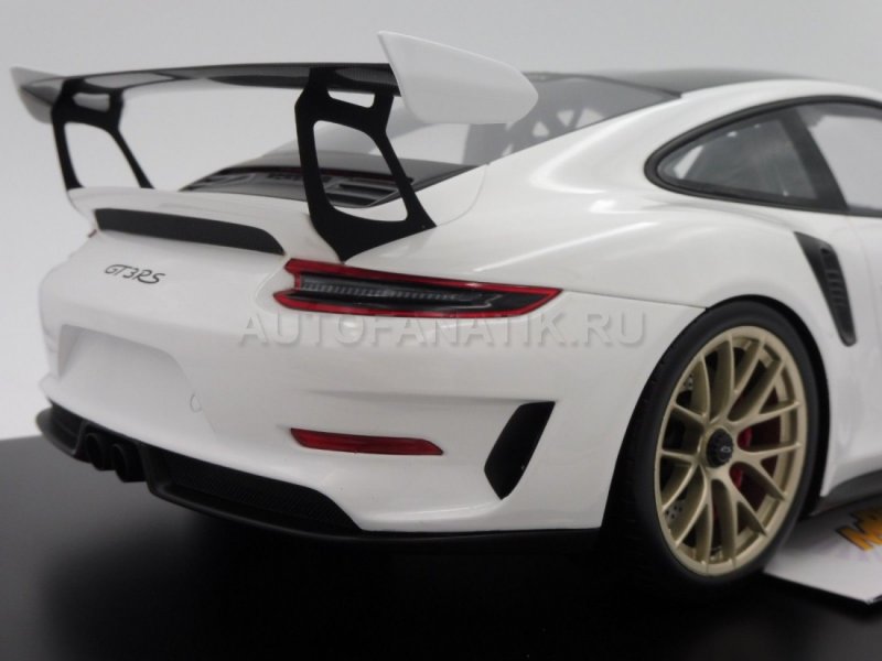 Спортивный болид в ультимативной гоночной спецификации "Weissach Package". Фантастическая детализация - отличие от оригинала только в масштабе. Карбоновые детали. Крупнейший масштаб 1:12, длина модели примерно 38 см. Производитель: Spark. Ограниченная серия, граничащая с эксклюзивностью: будет выпущено только 300 экземпляров с индивидуальными номерами-табличками.