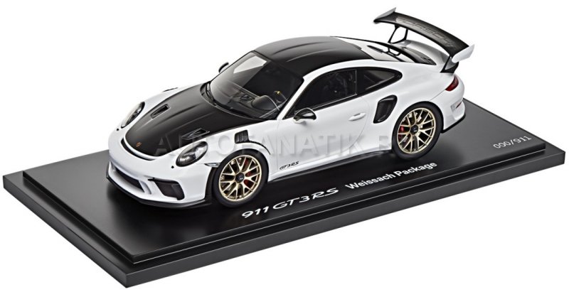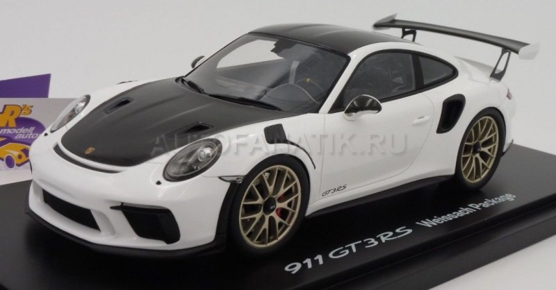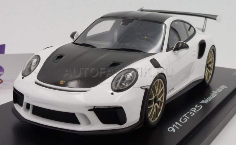 Спортивный болид в ультимативной гоночной спецификации "Weissach Package". Фантастическая детализация - отличие от оригинала только в масштабе. Карбоновые детали. Длина модели примерно 25 см. Производитель: Spark. Ограниченная серия: будет выпущено только 911 экземпляров с индивидуальными номерами.