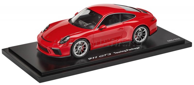 Крупная коллекционная модель Porsche 911 GT3 с пакетом "Touring" без фиксированного заднего антикрыла делает ее «волком в овечьей шкуре». Кузов в глубоком красном цвете "Guards Red". Интерьер в черном цвете. Изготовлена из металла, детали из пластика. Масштаб: 1:18. Выпуск ограничен: 911 экземпляров.