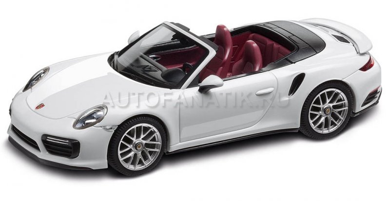 Porsche 911 Turbo S Cabriolet (серия 991 II). Цвет: белый каррара. Цвет салона: черный/бордовый. Из металла. Масштаб 1:43. Артикул: WAP 020 134 0G