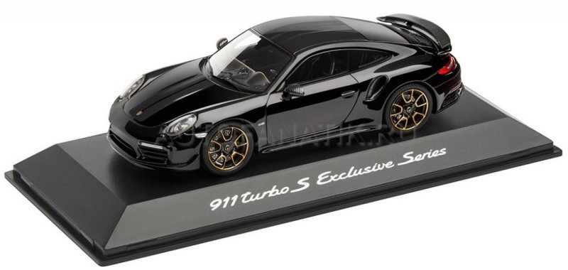 Масштабная модель Porsche 911 Turbo S, Exclusive Series. Цвет кузова: черный. Интерьер в черном/золотистом цветах. Кузов из металла. Масштаб 1:43.