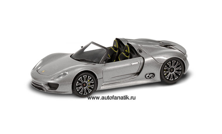 918 Spyder. Коллекционная модель, точно повторяющая автомобиль 918 Spyder Concept Study. Цвет: Liquid Metall. Салон в черном цвете. Из металла, пластмассы. Масштаб 1:18. WAP 021 191 0B