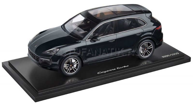 Крупная коллекционная модель автомобиля Porsche Cayenne Turbo. Цвет: темно-синий металлик (Moonlight Blue Metalllic). Интерьер в черном цвете. Кузов из металла, детали из пластика. Масштаб 1:18. Ограниченная серия: будет выпущено всего 1000 экземпляров.
