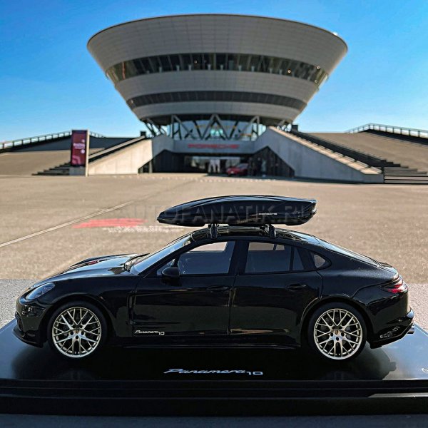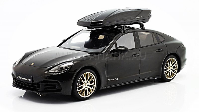 Специально выпущенный в честь десятилетнего юбилея Porsche Panamera - 10 Years Edition. Комплект поставки включает детализированный бокс на крыше. Модель выполнена в черном цвете с золотистыми литыми дисками. Багажник на крыше можно снять с модели. Эта высококачественная модель выпущена в количестве 623 экземпляров. Цвет: черный. Масштаб 1:18.