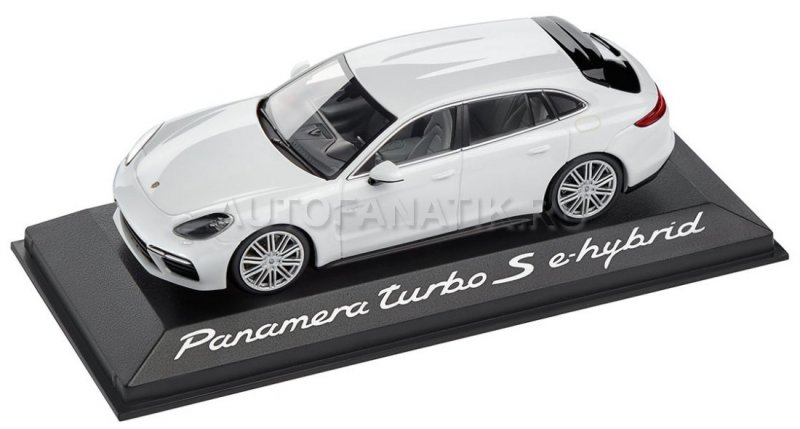 Масштабная модель Porsche Panamera Turbo S E-Hybrid Sport Turismo, кузов G2 (второе поколение). Цвет: белый (Carrara White). Интерьер в черном/меловом цвете. Кузов из металла. Масштаб 1:43.