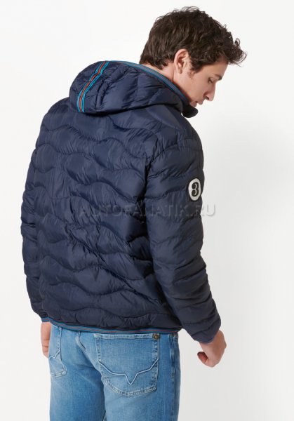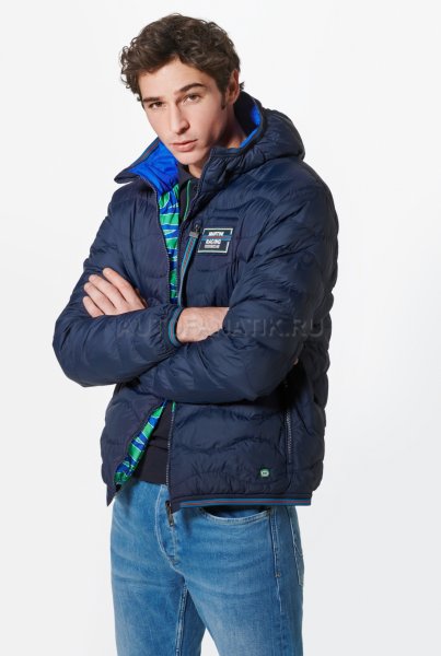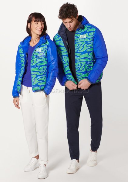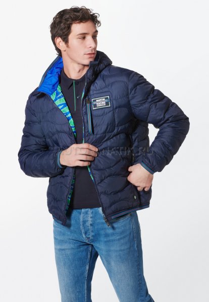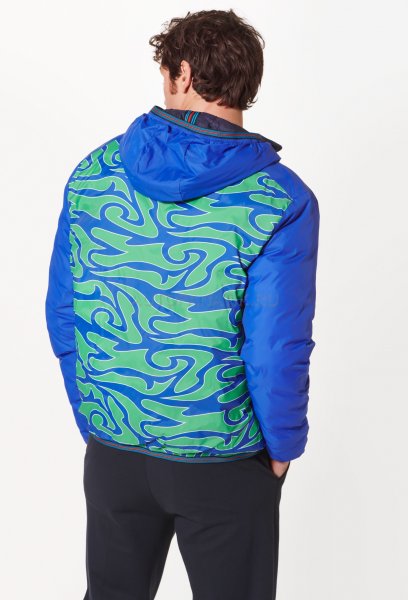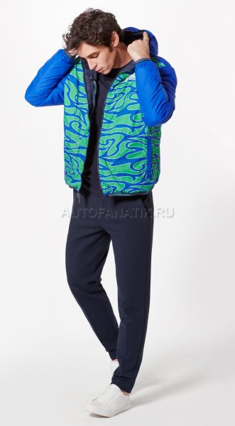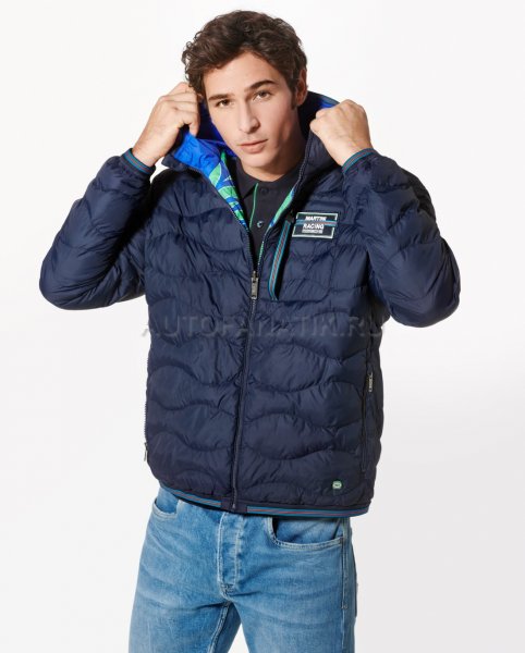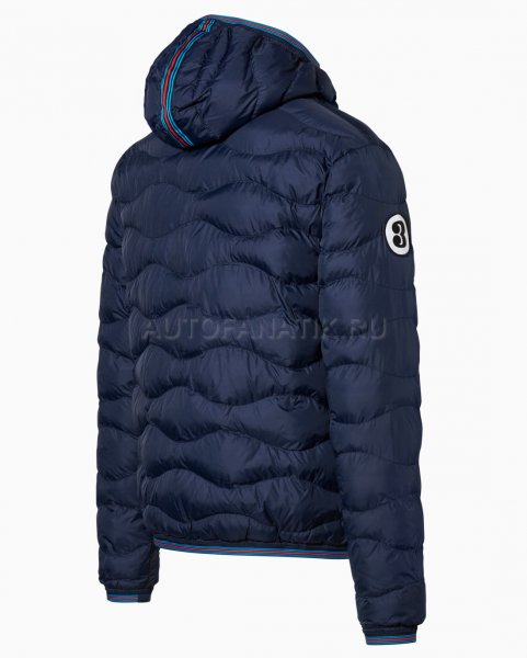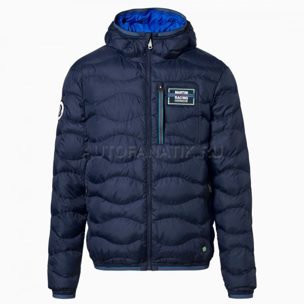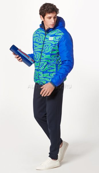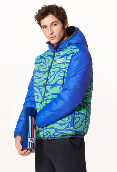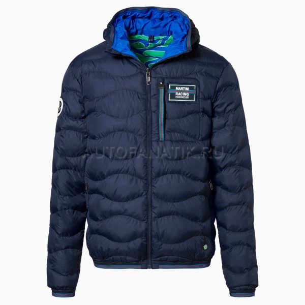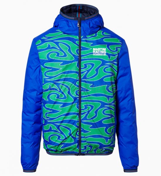 Современная, мягкая, двусторонняя стеганая куртка с капюшоном. С нагрудным карманом и двумя боковыми карманами. Ветрозащитный и водоотталкивающий материал. Детали в типичных цветах MARTINI RACING®. Значок «MARTINI RACING® PORSCHE» на груди, значок 3 на верхней части руки и значок 917 на подоле. Внутренняя часть вдохновлена дизайном болида Porsche 917 "Hippie". Синий наружный материал: 100% нейлон, патентованный внешний материал: 100% полиэстер.