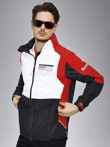 Мужская ветровка – Motorsport. Ветровка с капюшоном. Водоотталкивающий и дышащий материал [водонепроницаемость – 2000 мм вод. ст., воздухопроницаемость – 2000 г/м2/24 ч]. Капюшон складывается в воротник, размер манжет регулируется застежкой-липучкой. Нашивка «Motorsport SELECTION» на груди. С логотипами официальных спонсоров: Michelin и Mobil1. В комплект входят беруши для гонок (см. доп. изображение). Материал: 100% полиэстер. Цвета: черный/белый/красный.