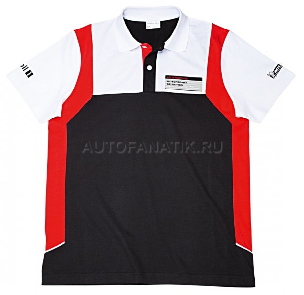 Мужское поло–Motorsport. Поло с отложным воротником и планкой на пуговицах. Нашивка «Motorsport SELECTION» на груди. С логотипами официальных спонсоров: Michelin и Mobil1. В комплект входят беруши для гонок. Материал: 100% хлопок. Цвета: черный/белый/красный.