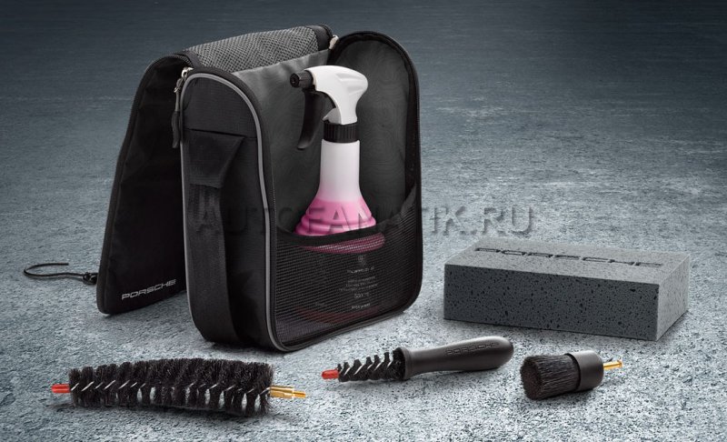Набор средств по уходу и очистке легкосплавных колесных дисков в практичной сумке. Набор состоит из средства для чистки колесных дисков (бескислотное) в 500 мл. бутылке с пульверизатором, губки, а также комплекта щеток (три штуки) для удаления сильных загрязнений.