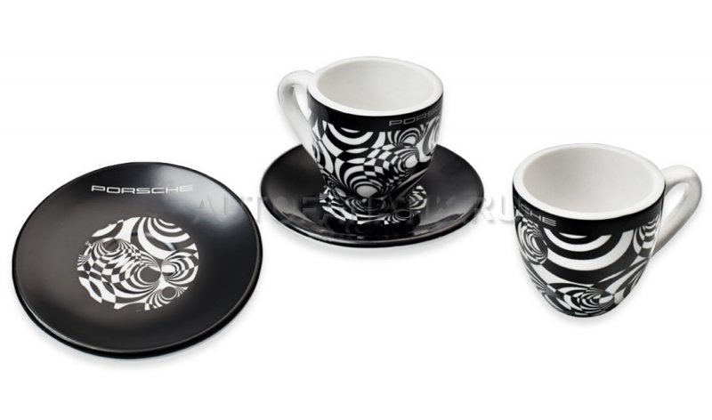Набор из 2 чашек для эспрессо – ограниченная серия. Выпуск ограничен 5 000 экземпляров. Чашки для эспрессо с камуфляжным орнаментом прототипа Porsche 919 Hybrid. С изображением Porsche 919 Hybrid на дне. Каждый экземпляр имеет индивидуальный порядковый номер. Допускается мойка в посудомоечной машине. Материал: фарфор. Артикул: WAP 050 045 0G