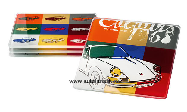 Подставка для стаканов [ 4 предмета ]. 2 разных рисунка из коллекции «Цвета 1968го». С нескользящей нижней поверхностью. Материал: стекло. Размеры: 10 x 10 см. WAP 050 050 0D