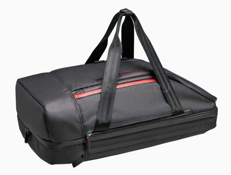 Функциональность, воплощенная в продуманном дизайне: дорожная сумка 2-в-1 от Porsche – это дорожная сумка или рюкзак - в зависимости от того, что вам нужно в данный момент. Спереди нанесен логотип Porsche. Материал и молнии водоотталкивающие, что делает дорожную сумку идеальным компаньоном в любую погоду. Основное отделение можно широко открыть благодаря двусторонней молнии, а при необходимости увеличить объем.