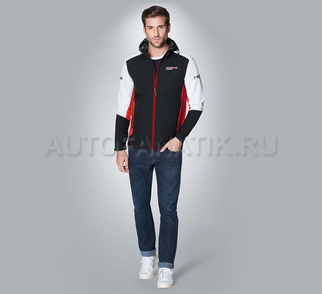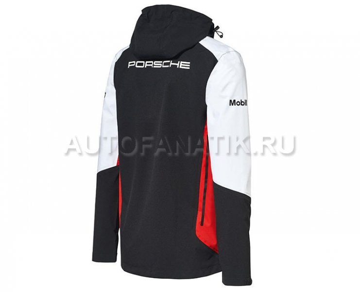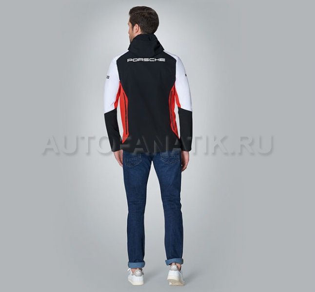 Легкая ветровка унисекс Porsche Motorsport. С убирающимся капюшоном, светоотражающими элементами и водонепроницаемыми швами. Внутри имеется специальный ремешок-держатель для берушей или очков. Материал: 100% полиэстер. Цветовая комбинация: черный/белый/красный.