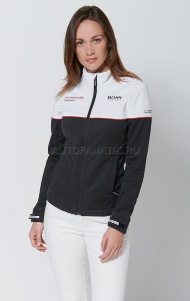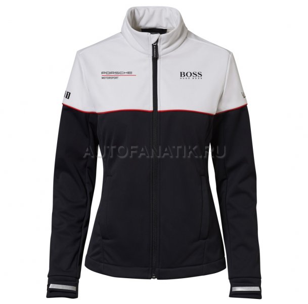 Куртка Softshell с воротником-стойкой, боковыми карманами на молнии, флисовой подкладкой и манжетами. Дизайн на основе оригинальной одежды команды Porsche Motorsport. Боковые карманы на молнии. Поставляется в комплекте с ремешком для очков и берушами для гоночной трассы. Материал: 100% полиэстер. Выполнена в сочетании двух основных цветов: черный / белый. Контрастные детали красного цвета.