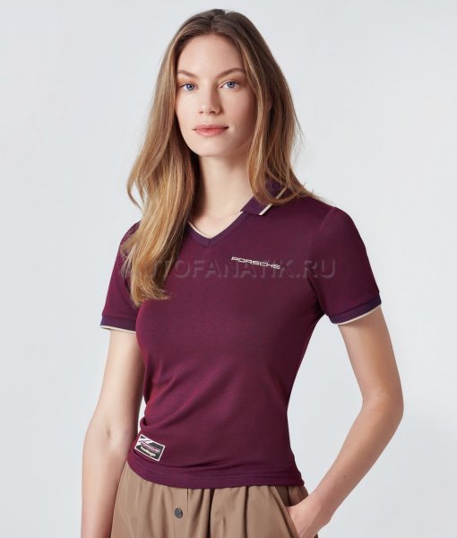 Женская рубашка-поло с v-образным вырезом из коллекции Heritage. Этой коллекцией Porsche восходит к 1950-м годам, когда бордовый и золотой цвета были очень популярны. Кроме того, этой коллекцией Porsche отмечает премьеру 911 Targa 4s Heritage Design Edition. Эта рубашка-поло имеет переливающийся эффект за счет двухцветного пике бордового и синего цветов. Золотистый логотип PORSCHE вышит на груди и шее. Материал: 50% хлопок, 50% полиэстер.