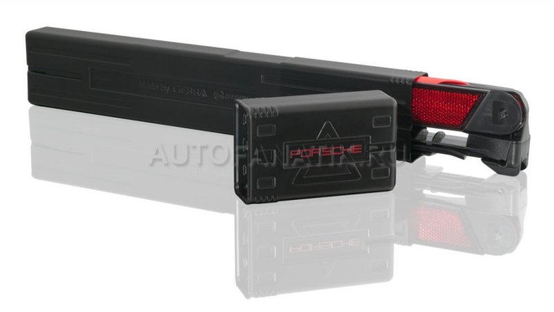 Знак аварийной остановки - классический складной светоотражающий треугольник в оригинальном исполнении от Porsche Classic. Имеет дневную и ночную стороны для обеспечения оптимальной видимости и безопасности днем и ночью. Знак аварийной остановки соответствует всем требованиям ЕС. На черном футляре для хранения нанесен логотип Porsche. Производство компании GEBRA.