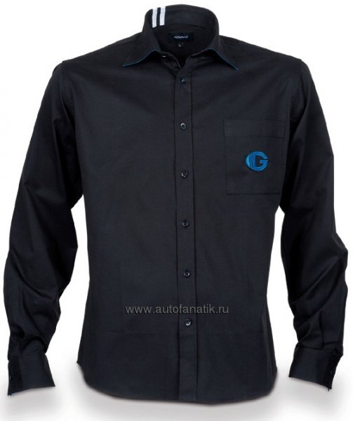 100% cotton, contrasting blue cuffs and inside collar. White bands sewn on the neck collar. Round buttons and embroidery on heart position.