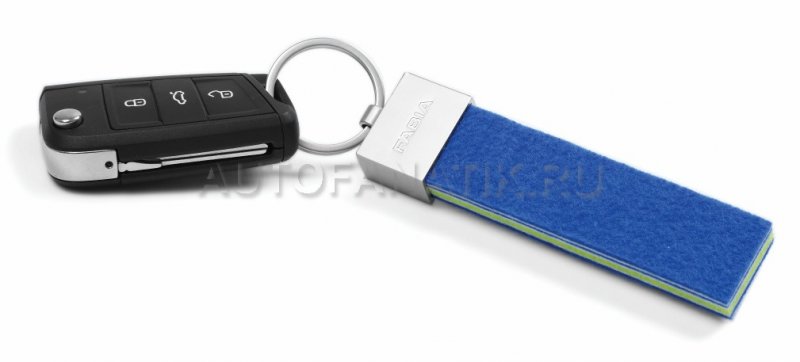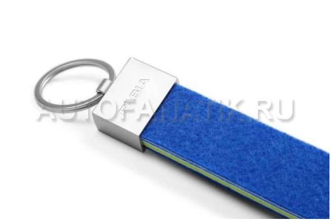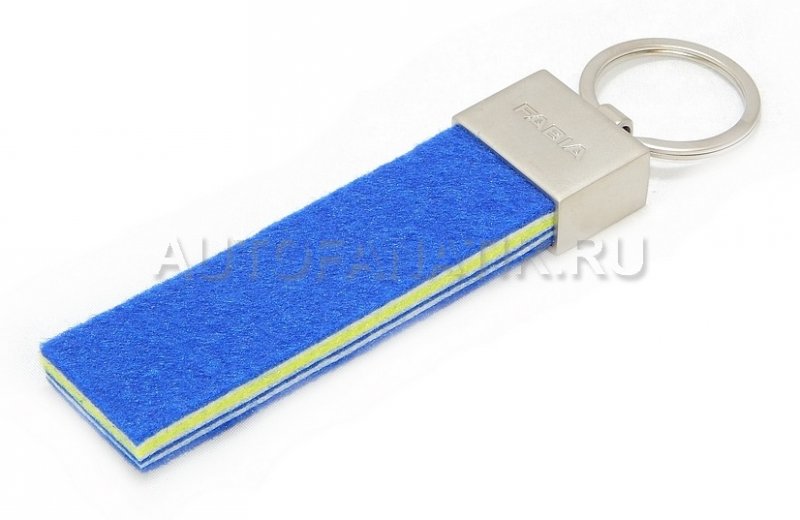 Product detail Material: Felt, Zinc alloy Dimensions: Délka bez kroužku 10,5 cm, tloušťka 1,4 cm A non-traditional Fabia keyring with distinctive blue-yellow-green colour combination will become a distinctive addition to your car keys. The layered felt is clamped by matte metal brace.