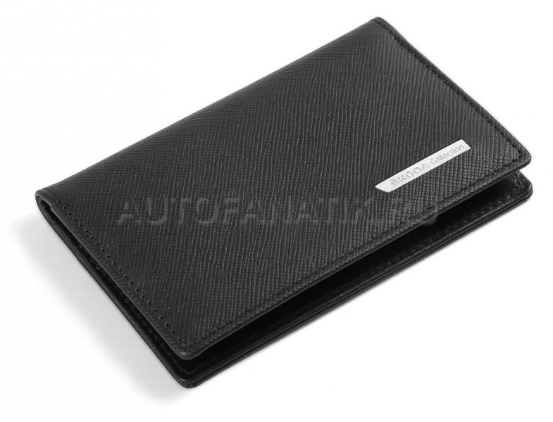 Элегантный футляр для визитных карт. Имеет дополнительные отделения для крединых карт и водительских прав. На внешней стороне металлический значок Skoda Collection. Материалы: внешняя кожа - Saffiano, внутренняя телячья кожа - Seta, Alpaca. Размеры: 10,2 х 6,6 х 0,8 см.