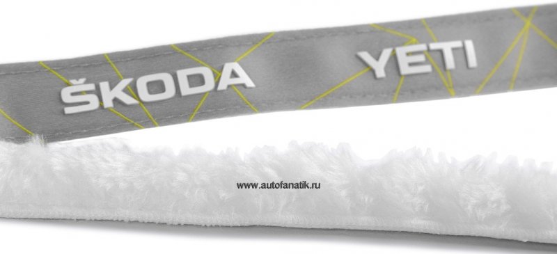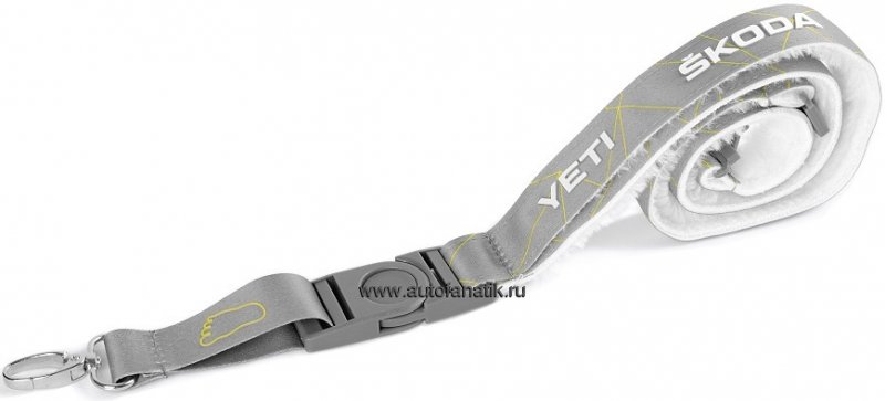 This Yeti lanyard is certainly original. On its underside, there is a shaggy material, reminiscent of the legendary snowman’s fur. The grey-green lanyard is made of polyester, with yellow-green contrast sublime print, with 3D PVC print with ŠKODA and YETI lettering white colour on top of it. The lanyard is, as usual, composed of two parts connected with turning plastic fastener. The shorter part with metal snap hook is adorned with 3D yellow-green Yeti footprint and white web address, the longer on has a safety plastic fastener in the back.