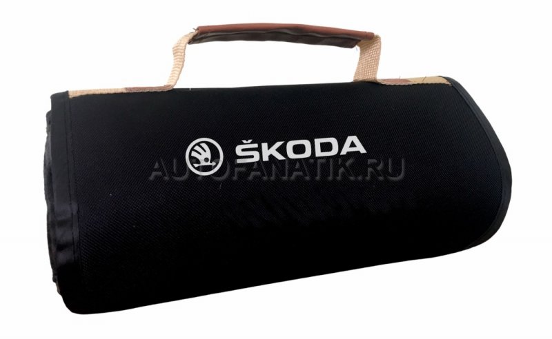 Непромокаемый плед Skoda для любителей выездов на природу! С лицевой стороны мягкая и приятная ворсистая поверхность. При транспортировке скручивается в рулон с удобной бежевой ручкой. Нижняя сторона черная, внешняя - серая в клетку. В развернутом состоянии: 150 х 175 см., в рулоне: 30 х 13 см.