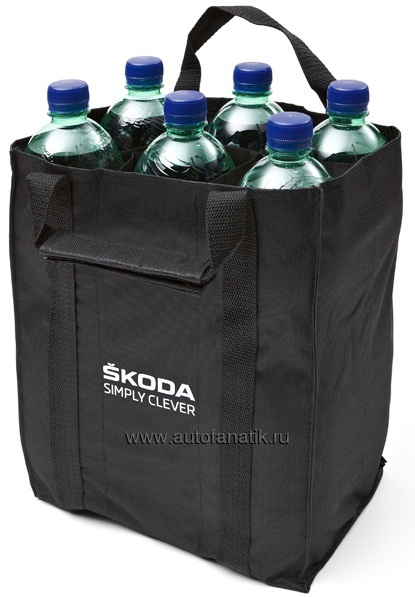 Do you buy drinks often? Then this practical textile bag, made especially for this kind of shopping, will come very handy to you. It has six pockets for 0.7 litre bottles, which keep glass or plastic bottles upright and away from each other. End of the glass clinking, bottles falling and the risk of breaking – this is the bottle bag from the ŠKODA gift item collection.