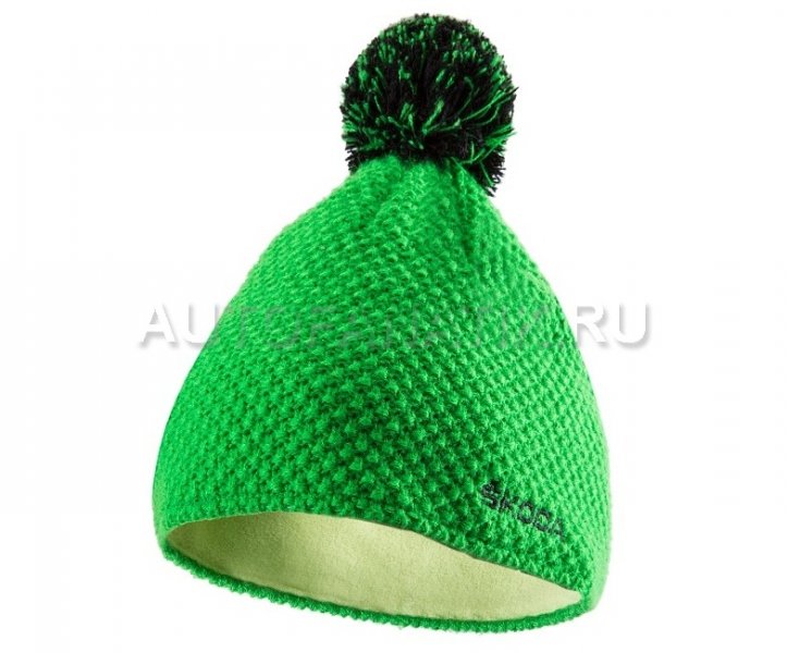 Вязаная зимняя шапка с помпоном - яркая деталь в Вашем гардеробе! Материал: 100% акрил. Подкладка: 100% полиэстер. Цвет шапки: зеленый. Помпон: черно-зеленый.