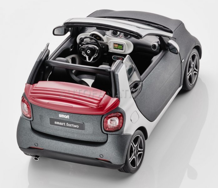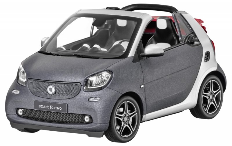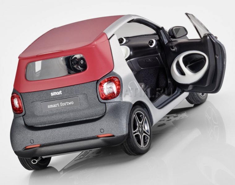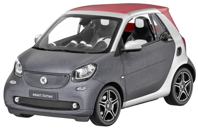 Ручная сборка, оригинальное лакокрасочное покрытие, воспроизведение в соответствии с оригинальным данными CAD – все это свойственно миниатюрной модели кабриолета smart fortwo. Миниатюрная модель из литого металла с деталями из пластмассы размером 15 см. впечатляет спорт-пакетом, детальным воспроизведением салона, а также легкосплавными колесными дисками черного цвета с 8 Y-образными спицами (R95) или с 5 сдвоенными спицами в двухцветном исполнении.