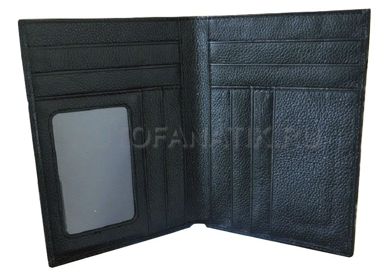Кожаное портмоне кошелек Subaru. 1 отделение для банкнот, 1 отделение для паспорта, 5 отделений для карт, 6 дополнительных универсальных отделений. Размеры в сложенном состоянии: 11 х 15 см., в разложенном - 22 х 15 см. Цвет: черный.