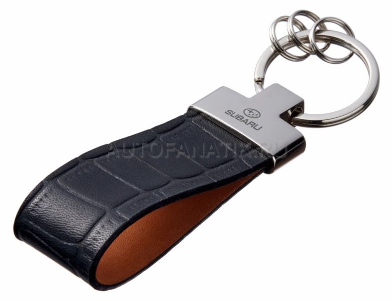 Элегантный брелок Subaru с петлей из высококачественной натуральной телячьей кожи, с тиснением под крокодиловую кожу. Основание брелока сделано из металла с лазерной гравировкой логотипа. Ширина кожаной петли: 27 мм., длина брелока без кольца: 80 мм., длина с кольцом: 110 мм. Цвет кожаной петли: черный со внешней стороны и коричневый со внутренней. Поставляется в черной подарочной коробке с логотипом Subaru.