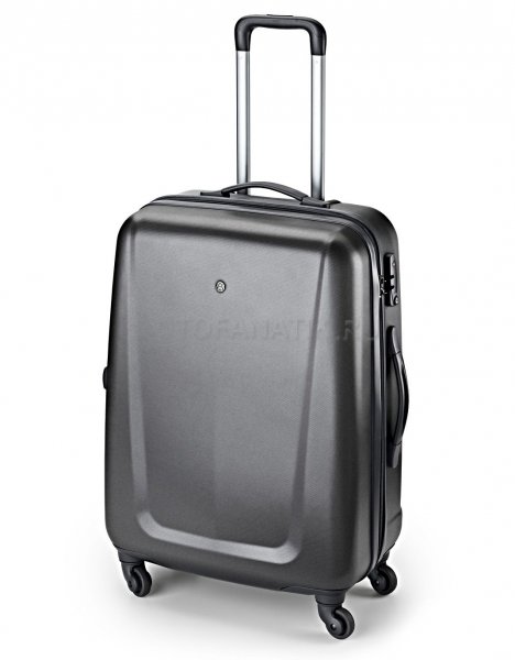 Чемодан на колёсиках, средний. Лёгкий и прочный чемодан с ручками, четырьмя встроенными колёсиками и кодовым замком TSA. Два стяжных ремня, внутренняя перегородка для багажа, а также дополнительный пакет для обуви или аксессуаров. Материал: поликарбонат. Цвет: антрацит. Размеры: 66 х 45 х 26 см. Вес: 3,6 кг. Артикул: 000087301E BZR