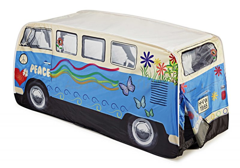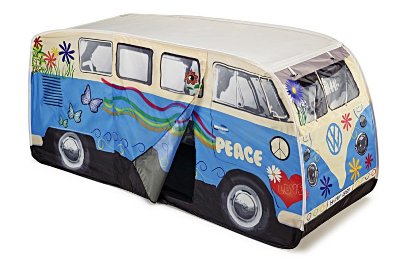 Детская палатка, стилизованная под хиппи-автобус 1960-х годов - легендарный Volkswagen T1 Bulli! Эта оригинальная и веселая палатка доставит Вашим детям массу удовольствия. Палатка является водонепроницаемой и может использоваться как в помещении, так и на улице. Круглая сумка для переноски поставляется с оттиском колес, четырьмя петлями и четырьмя колышками. Материал: полиэстер 100%. Размеры: 160 х 63 х 70 см. Материал: полиэстер.