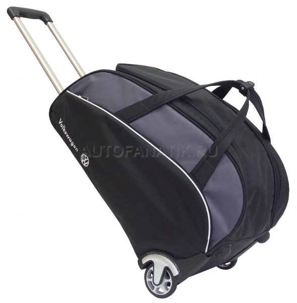 Компактная сумка на колесах с телескопической ручкой имеет одно основное отделение, закрывающееся клапаном на молнии. На стенках расположены удобные карманы на молнии. Размеры: 56 х 33 х 30 см.