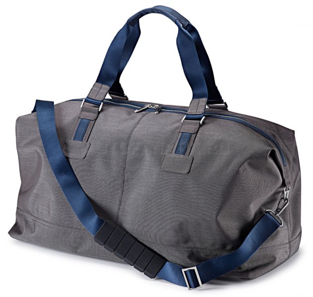 Элегантная сумка для путешествий на выходных! С наплечным ремнем синего цвета и двумя усиленными ручками. 2-полосная U-образная молния открывает удобный доступ в основное отделение. Плечевой ремень имеет гибкую резиновую прокладку и позволяет носить сумку по диагонали. Внутри есть еще одна молния с отделением для смартфона и планшета. В основании имеются 4 металлических ножки-полушария. Это позволяет ставить сумку без повреждения нижней части на любой поверхности. Цвет: серебристо-серый. Объем: 65 литров. Грузоподъемность: 12 кг. Материал: 100% нейлон. Вес нетто: 0.98 кг. Длина [см]: 58, ширина [см]: 30, высота [см]: 38.