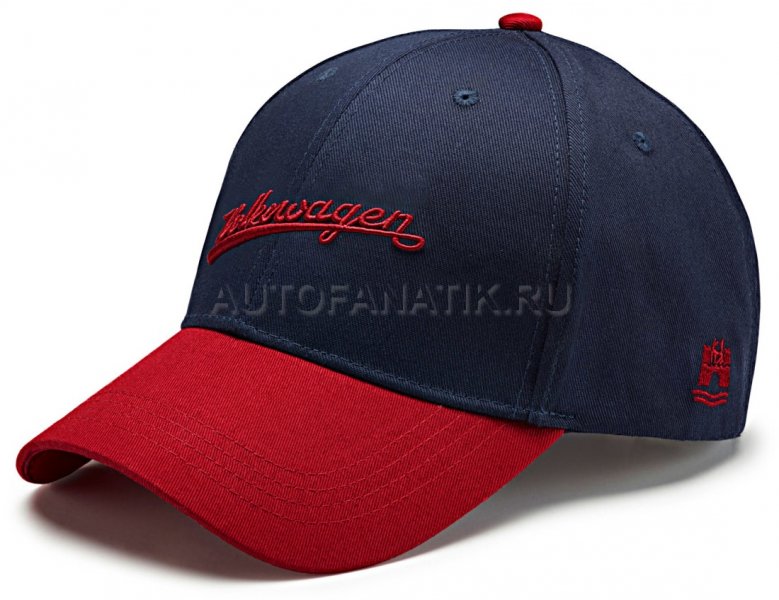 Двухцветная кепка из 6 панелей, совместный продукт с компанией Arqueonautas. Спереди вышита объёмная надпись Volkswagen в стиле ретро. Сзади предусмотрен ремешок для регулировки по ширине с логотипом VW на пряжке. Цвет: тёмно-синий / красный. Коллекция: Volkswagen Classic. Материал: хлопок 100%, подкладка: 100% хлопок. Артикул: 000084300AB XW8