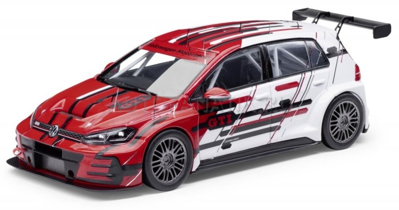 Golf GTI TCR 2018 - литая модель в масштабе 1:43 представляет спортивный автомобиль 2018 модельного года. Цвет: белый, серый, красный.