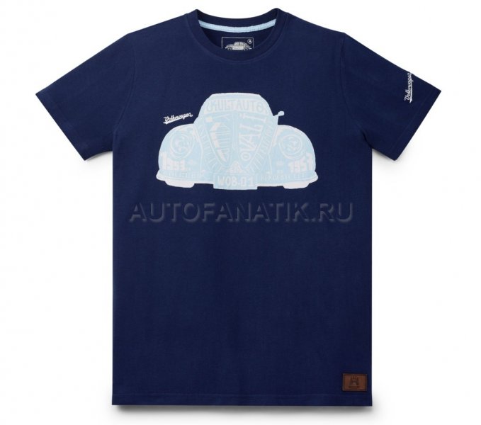 Неповторимый, уникальный, легендарный - Volkswagen Beetle! Футболка из классической коллекции демонстрирует особенно выразительный бирюзовый принт в форме автомобиля, который состоит из композиции множества надписей и памятных дат вокруг жука и его невероятной истории. Надпись Volkswagen прописным ретро-шрифтом на груди и на рукаве. Цвет: темно-синий. Материал: 100% хлопок.