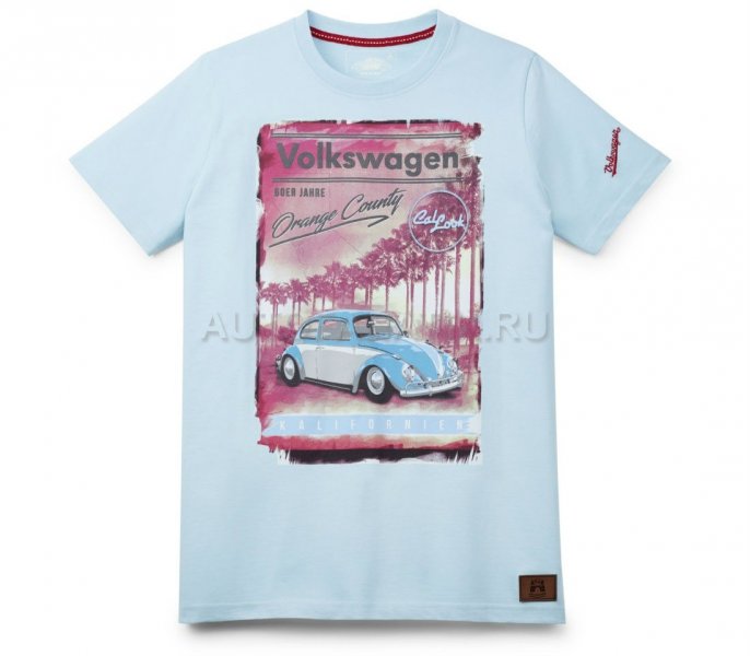 Спортивная, летняя, поразительная! Раскройте свою красочную сторону и насладитесь классическим рисунком "Жука" на этой футболке в стиле солнечной Калифорнии. Исторический логотип Volkswagen вышит на левом рукаве. Нашивка с гербом Вольфсбурга спереди снизу. Материал: 100% хлопок. Цвет: бирюзовый.