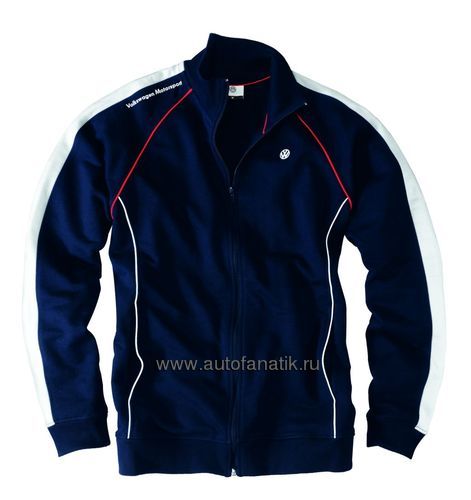 Спортивная толстовка на молнии. Подчеркнуто спортивный дизайн с контрастирующей окантовкой красного цвета вокруг плеч и надписью Volkswagen Motorsport на плече. Материал: 100% хлопок. Цвет: синий/белый. Размеры: М, L, XL, XXL, XXXL.