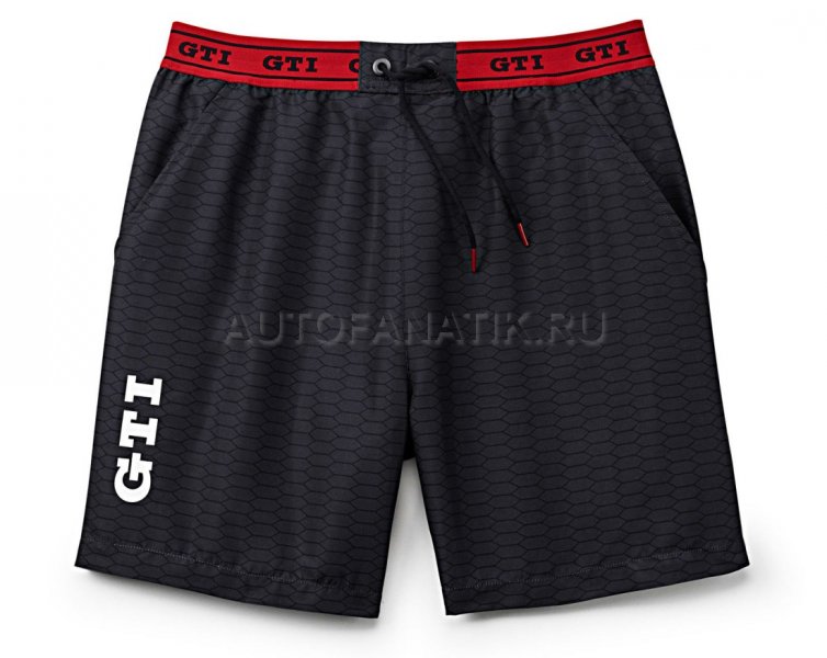 Чистое удовольствие от купания! Шорты для плавания с печатным "сотовым" узором GTI. Пояс ярко красного цвета с надписями GTI по всей окружности, регулировочный шнурок спереди по центру. Другой, белый логотип GTI сияет на правой штанине. Практичный карман на молнии сзади. В заднем кармане встроена резиновая этикетка GTI. Цвет: черный/красный. Материал: 100% полиэстер.