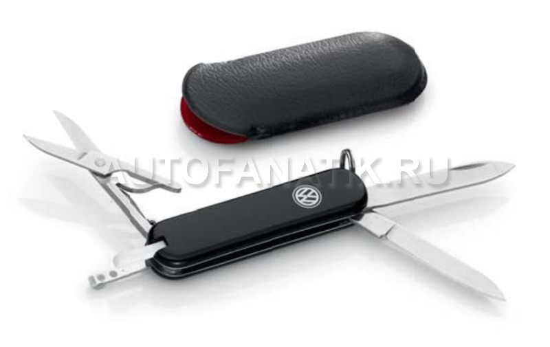 Перочинный нож Volkswagen с кольцом для ключей. Поставляется в чехле. Длина лезвия: 58 мм. Инструменты: