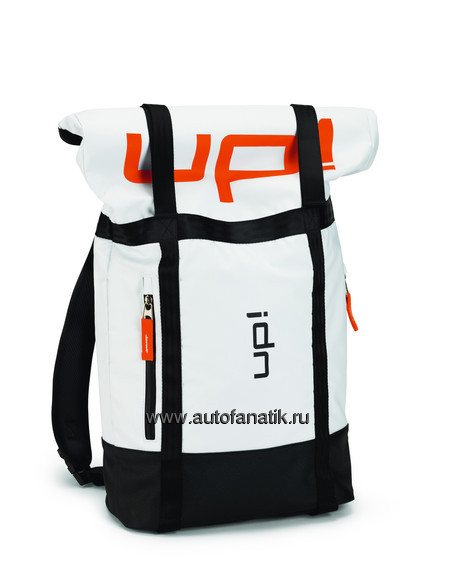 Универсальный рюкзак, имитирующий тент грузового автомобиля. Полностью белый, с логотипом up! Материал: Tarpaulin 100% ПВХ. Материал подкладки: полиэстер 210D. Артикул: 1S0087321 RU8