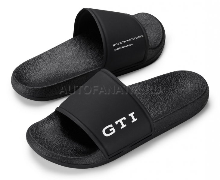 GTI-стиль с ног до головы! Отличная обувь для отдыха - удобные шлёпанцы с логотипом GTI. Мягкая подошва, стойко противостоящая старению и истиранию. Материал: EVA-пена. Цвет: черный.