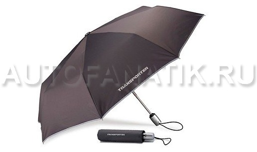 Der Oversize-Taschenschirm mit verchromtem Stahlstock, chromfarbenem Kunststoffgriff, Nickelspitzen und Windproof-System öffnet und schließt auf Knopfdruck automatisch. Der graue Bezug hat eine silberne Reflexpaspel (gem. DIN EN ISO 20471). Der Transporter-Schriftzug ist auf einem Segment des Schirms silberfarbig aufgedruckt. Der Schirm ist in einer Hülle verpackt, die ebenfalls mit dem Transporter-Schriftzug in silber bedruckt und mit einem Klettverschluss versehen ist.