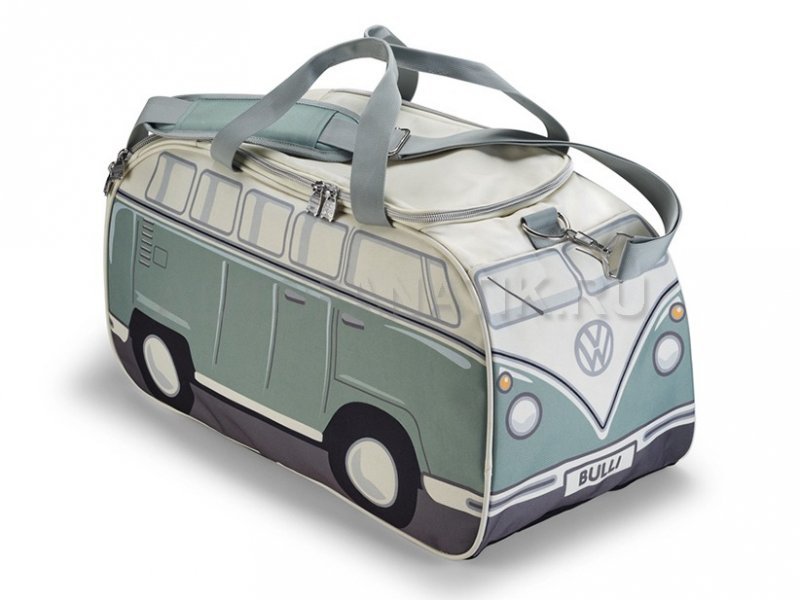 Оригинальная спортивно-туристическая сумка VW в дизайне T1, с металлическими молниями в дизайне Т1. Водоотталкивающее внутреннее покрытие, съемный мягкий плечевой ремень, с боковым отделением для обуви, "мокрым" отделением. Материал: полиэстер. Цвет: серый/зеленый. Ширина: 500 мм. Высота: 260 мм. Глубина: 250 мм.