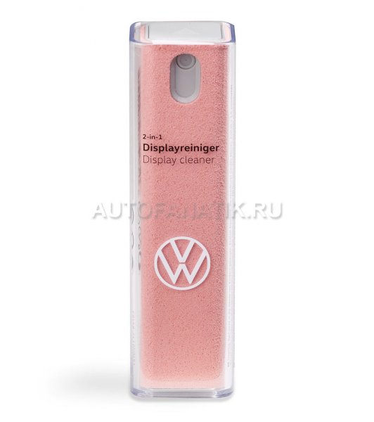 Оригинальное приспособление для очистки дисплеев и глянцевых поверхностей в салонах автомобилей Volkswagen. Представляет из себя вытянутый четрехугольный пузырек со специальной чистящей жидкостью и пульверизатором. Внешние стороны пузырька отделаны специальной ворсистой тканью розового цвета. Для очистки нужно сначала нажать на кнопку в торце и побрызгать на поверхность, а потом одной из четерех сторон протереть экран в одно движение. Разводов и отпечатков пальцев не остается.