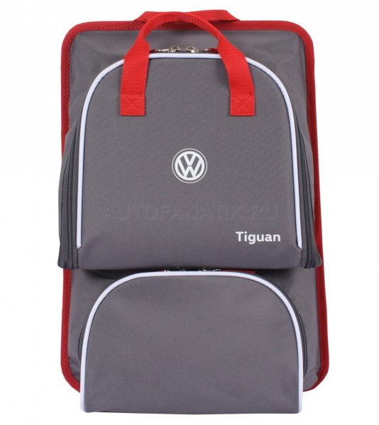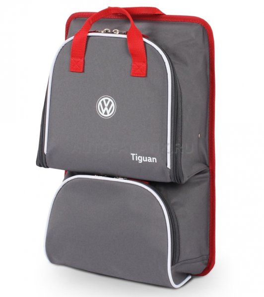 Сумка-столик имеет два отделения на молнии, одно из которых при открывании откидывается вперед, образуя "столик". Верхнее отделение имеет внутри объемный карман из сетки. Сумка имеет ручки из тесьмы, для крепления на переднее сиденье авто предусмотрен ремень с пластиковым замком. Размер: 30 х 42 х 11(32) см.