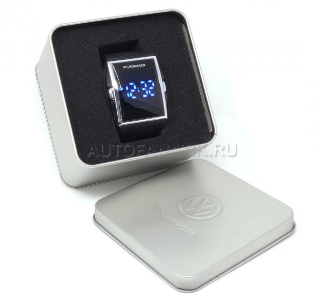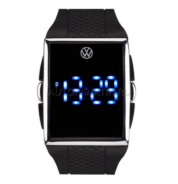 Модные светодиодные наручные часы Volkswagen. Черный циферблат, синие символы. Отображает часы, минуты, секунды и дату. Черный пластиковый эластичный ремешок. Размеры корпуса: 40 х 45 мм. Водонепроницаемость до 3 атм. Стильная алюминиевая подарочная коробка. Размеры корпуса: 40 х 45 мм.
