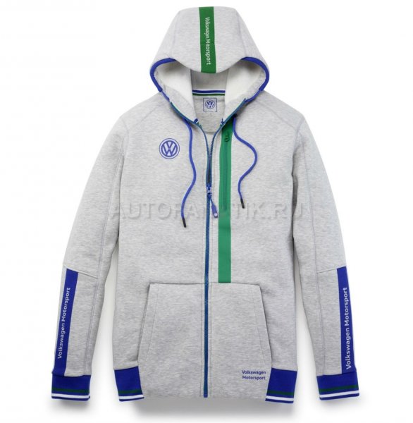 Спортивная и модная толстовка с капюшоном, с очень удачным сочетанием цветов в дизайне. Исключительно удобный и мягкий материал, достаточно плотный. Контрастные полосы синего и зеленого цветов концентрируют внимание. Надписи Volkswagen Motorsport спереди внизу и на рукавах создают настроение Вам и окружающим. Материал: 57% полиэстер, 43% хлопок. Основной цвет: серый меланж.